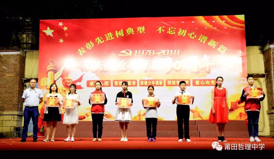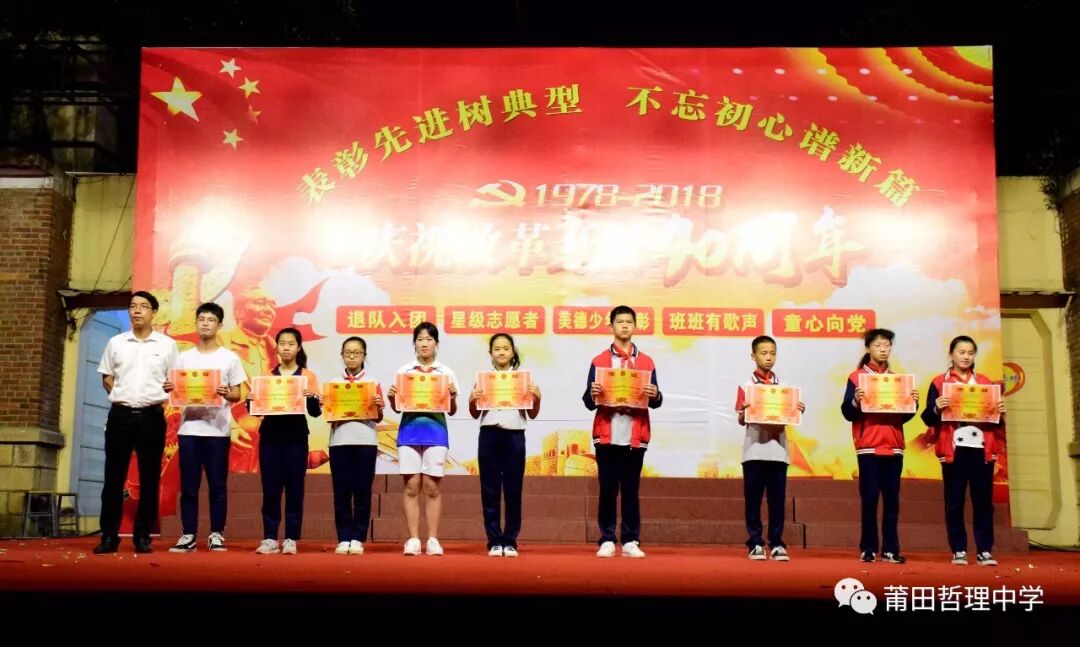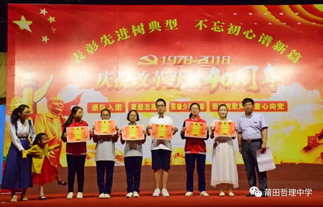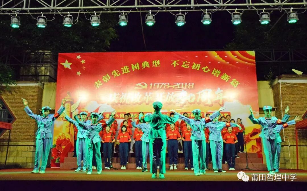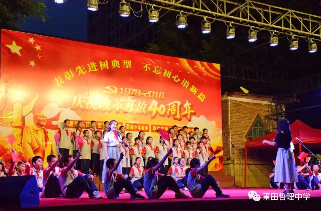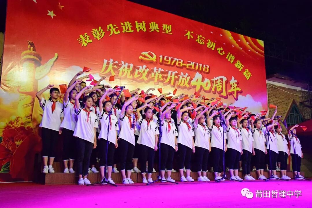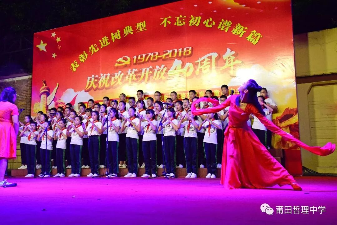 今年是改革开放四十周年,为庆祝这一历史节点,展现新时代哲理人的良好精神风貌,继承光荣传统,弘扬民族精神,5月8日晚,由我校七年级和高一年级参加的歌咏比赛在运动场上隆重举行。 一颗红心交祖国、满腔热血献给党。比赛在嘹亮的歌声中拉开帷幕,各班依次上台演唱,同学们着装统一,精神抖擞,动作和表情处处洋溢着青春的气息。《打靶归来》、《红旗飘飘》、《国家》、《我爱你,中国》、《听妈妈讲那过去的事情》、《天路》《明天会更好》《青春舞曲》等一首首耳熟能详的红歌及青春之歌响彻校园。高一(1)班带来的《送别》,童声、古筝、电子琴巧妙融合在一起,唱响新时代中学生对过去岁月的无尽追思,为雨夜增添几分诗意。架子鼓、二胡、古琴齐上阵,更有七年(15)班的现场书法展示,充分显示出哲理学子朝气蓬勃、积极乐观、健康向上的精神面貌,同学们的歌声唱出了他们对祖国、对党、对人民诚挚的热爱。 改革开放是决定当代中国命运的关键抉择,是发展中国特色社会主义、实现中华民族伟大复兴的必由之路。每个班级以精彩纷呈的合唱,表达了对党的英明决策的讴歌和赞美。四十年的时间,不过是历史长河中的一滴水,却融进了中国改革开放的潮起潮落。 此次歌咏比赛,不仅为同学们提供了展示自己的平台,增强了班级凝聚力,丰富了他们的课余生活,更激发了爱国热情,进一步弘扬了社会主义时代精神,引导他们树立正确的人生观、价值观。 比赛结果 一等奖 七年(15)班 七年( 9 )班 七年( 3 )班 七年( 1 )班 七年( 6 )班 七年( 5 )班 高一( 1 )班 高一( 6 )班 二等奖 七年(16)班 七年(18)班 七年( 4 )班 七年(17)班 七年( 8 )班 七年( 7 )班 高一( 4 )班 高一( 5 )班 三等奖 七年(13)班 七年(14)班 七年(20)班 七年(10)班 七年(12)班 七年( 2 )班 七年(11)班 七年(19)班 高一( 2 )班 高一( 3 )班 最佳个人