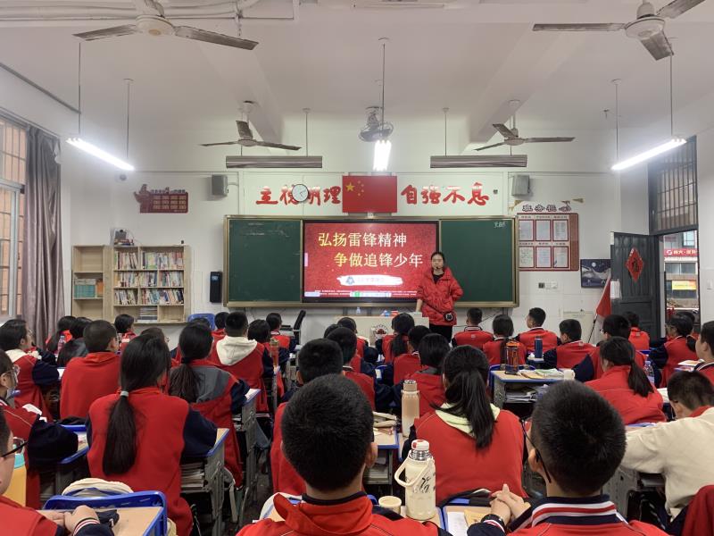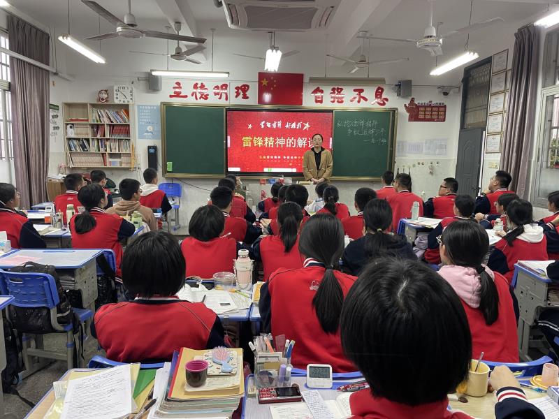 为传承雷锋精神,培育责任担当,近日,我校开展了“弘扬雷锋精神 争做追锋少年”主题班会活动。班会以“学习雷锋事迹、践行雷锋精神”为主线,通过多样形式引导同学们深刻理解雷锋精神的时代内涵。 活动中,同学们首先观看了雷锋同志的纪录片片段,重温他“全心全意为人民服务”的感人事迹。随后,班级分成小组围绕“新时代如何践行雷锋精神”展开热烈讨论,大家结合校园生活实际,提出“主动帮助同学解答难题”“参与班级绿植养护”“节约水电资源”等具体行动方案。在“雷锋精神分享会”环节,多位同学分享了身边同学助人为乐的小故事,如“默默帮同学整理散乱书桌”“主动承担班级卫生死角清洁”等,引发全班共鸣。 班会最后,班主任带领全体同学宣誓:“从点滴做起,从身边做起,以雷锋为榜样,争做有理想、敢担当、肯奉献的追锋少年!”此次班会不仅让同学们深化了对雷锋精神的认识,更激发了大家在日常学习生活中践行奉献精神的自觉,为班级营造了“人人学雷锋、时时学雷锋”的良好氛围。