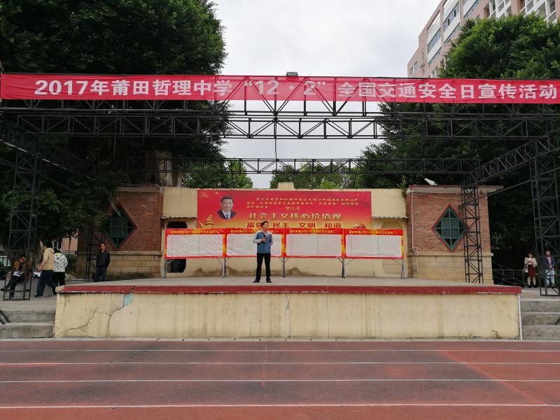 大家早上好!今天由我在国旗下讲话,今天我要讲的是主题活动一是第六个12.2“全国交通安全日”主题是:《尊法守规明礼,安全文明出行》,交通安全关系到我们每一个人的生命安全,关系到千家万户的幸福生活。不久前仙游就发生两起交通安全的事故,一起公交车事故一起骑电动车事故。同学们,生命给予每一个人只有一次,请珍爱生命,遵守交通法规,安全出行。为此,我们通过这次“交通安全教育宣传日”活动提高我们的交通安全意识,增强交通安全法制意识。今天,就交通安全工作,想给同学们提以下几点要求。 1、步行,行人须在人行道内行走,没有人行道靠右边行走。穿越马路须走人行横道(斑马线),通过没有红绿灯的人行道,要左顾右盼,注意来往车辆,不准追逐,奔跑;不准在车辆临近时突然横穿;不准翻越马路边和路中的护栏、隔离栏,不准在道路上扒车、追车、强行拦车或抛物击车。 2、骑自行车。应该注意:不平行骑车、不打伞骑车、不脱手骑车、不骑车带人、不骑“病”车、不骑快车、不与机动车抢道、不并排骑车、不互相追逐或曲折行使、不要闯红灯、不要争道抢行,急转猛弯等等。