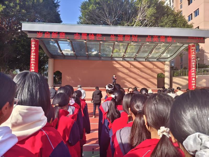 尊敬的各位领导,亲爱的老师、同学们: 大家早上好!今天我国旗下讲话的主题是“新年启新程,生涯向未来”。 我们学校秉持“为党育人、为国育才”的使命,传承哲理钟楼“心系家国、包容创新、坚毅乐观、明理奋进”的文化精神,以“明哲致远”为办学理念,以“立德明理,自强不息”为校训,致力于培养具有家国情怀和未来担当的哲理学子。而生涯规划,正是我们每一位哲理学子将个人理想与家国担当相结合的重要路径。 过去一年,学校学生发展指导中心围绕“生涯规划与学习力提升”,开展了一系列贴合不同学段需求的指导活动:面向高一年级的“规划选科 成就未来”讲座,助力同学们在新高考背景下科学决策、明晰方向;针对高二的学业规划指导,引导大家在关键阶段稳扎稳打、厚积薄发;为九年级和高一同学举办的“设定目标 规划精彩”专题活动,鼓励大家从起点树立志向、激发内驱;开展两三毕业年级的励志报告会,陪伴学子在冲刺阶段坚定信念、奋勇向前。此外,我们也通过各年段的家长讲座,推动家校协同,共同营造支持成长的教育生态。 或许有同学会问:“生涯规划是否离我们还很遥远?”其实,生涯意识早已蕴藏在日常点滴之中生涯规划,从来不是遥远的未来命题,而是当下每一刻的选择与坚持。 新的一年,愿大家从以下三方面践行“向哲 勤毅”的学风,逐步绘就生涯蓝图: 第一,在“尝试”中找热爱。学校开展了27个社团,是同学们探索兴趣、发展潜能的重要平台。无论是以科技触达未来的无人机社,以劳动体验耕耘价值的劳动社,还是以文字叩问心灵的文学社,每一次参与都是对自我的一次发现。请勇敢尝试,哪怕只是一次实践、一次体验,都可能点亮你眼中那束名为“热爱”的光。 第二,在“坚持”中练本领。生涯的底气源自日复一日的积累。爱数理,就钻研每一道难题;喜文史,就梳理每一篇文章的逻辑;擅体艺,就认真对待每一次训练。就像后勤老师将物资管理做到“账物相符百分百”的那份执着,“坚持做好一件事”的能力,是我们走向未来的坚实基石。 第三,在“担当”中明责任。去年科技文化节中,许多同学主动搬运道具、整理场地,这些看似微小的行动,实则是责任意识的生动体现。无论未来走向何种岗位,“靠谱”“负责”都是人生最珍贵的品质。从班级事务做起,从兑现承诺做起,我们正是在为未来的生涯“积蓄品格”。 对于高中同学而言,生涯规划更具现实意义。你们正处于学业与人生的关键路口,高考的选择与未来的职业路径、人生方向紧密相连。希望大家既脚踏实地、勤学不辍,也抬头看路、明晰方向。多关注高校招生动态,多参与生涯讲座与研学交流,让奋斗的脚步更加坚定。 同学们,新年的意义在于成长与出发。愿大家在新的一年里,既胸怀家国、仰望星空,也脚踏实地、勤奋向前。在哲理校园中,书写属于自己的精彩生涯。 最后,祝愿老师们新年安康、耕耘有获,祝愿同学们在新的一年里,以新的面貌踏上新的征程,在哲理这片沃土上,成长为明理奋进、自强不息的追梦人!谢谢大家!