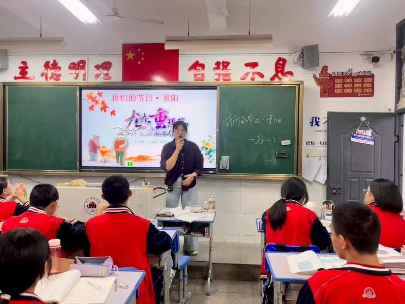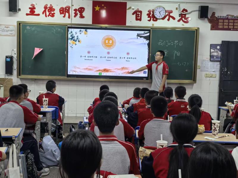 近日,我校各班开展“我们的节日·重阳”主题班会活动,引导同学们了解传统节日文化,传承敬老爱老美德。班会通过观看重阳节习俗短片、“重阳知识问答”、制作敬老贺卡等形式展开。班主任讲解了重阳节“登高望远、赏菊敬老”的文化内涵,结合“九九重阳,久久情长”的寓意,鼓励同学们用实际行动表达对长辈的感恩。同学们分享与爷爷奶奶的温暖故事,在“时光慢递”环节写下祝福卡片,承诺为家人做一件敬老小事。班会在齐诵《九月九日忆山东兄弟》中结束,让传统节日的文化基因在青春心中扎根。