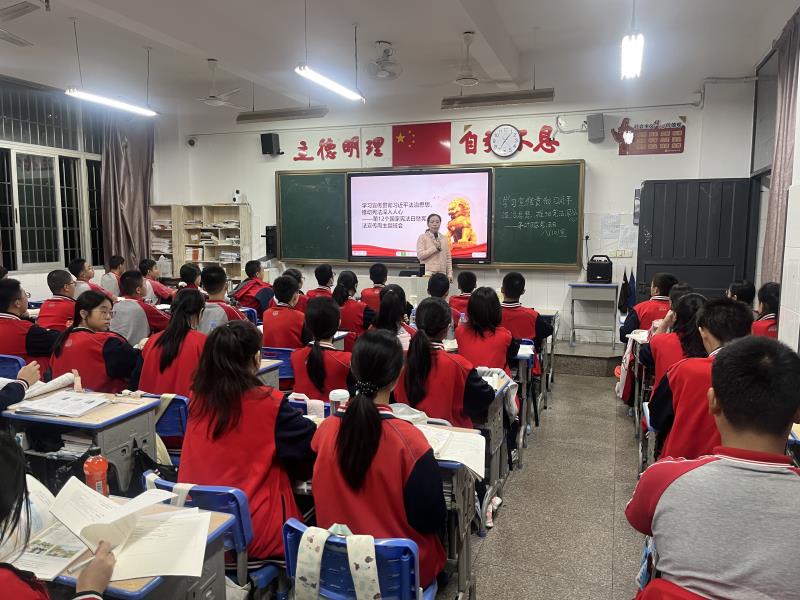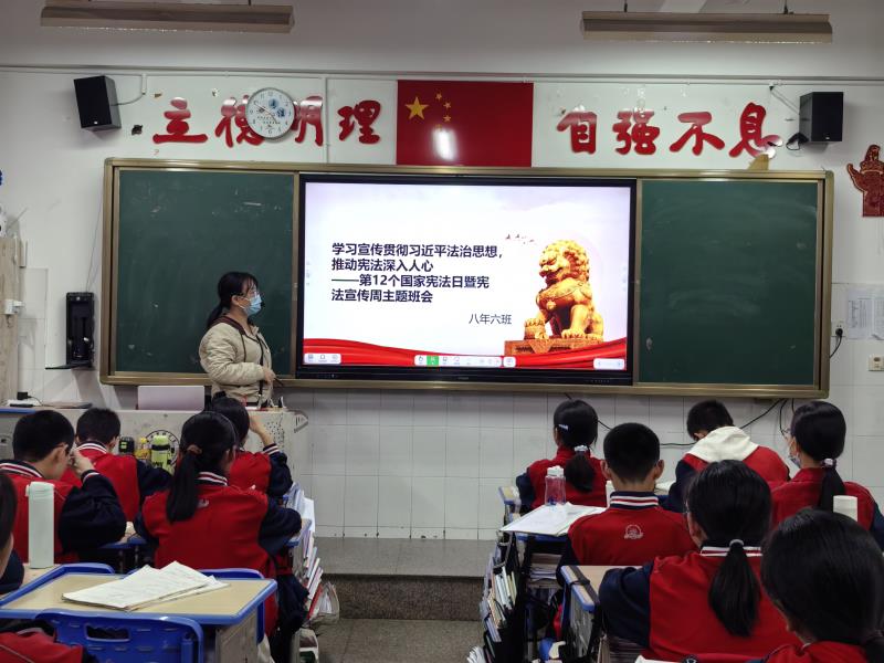 12月4日,在第12个国家宪法日暨宪法宣传周到来之际,我校各班级开展"学习宣传贯彻习近平法治思想,推动宪法深入人心"主题班会活动。 班会上,班主任通过案例讲解、知识问答等形式,带领同学们学习习近平法治思想的核心要义,重点解读宪法关于公民权利与义务的规定。同学们结合校园生活实际,围绕"宪法与我"展开热烈讨论,纷纷表示要从遵守校规校纪做起,增强法治观念。活动中还进行了宪法宣誓仪式,全体同学举起右拳庄严宣誓,铿锵有力的誓言展现了青少年尊法学法守法用法的坚定决心。 此次主题班会活动,使同学们深刻认识到宪法是国家的根本大法,进一步增强了法治意识和公民责任感,为营造校园法治文化氛围奠定了良好基础。