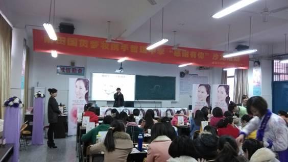1、校妇女主任林淑芳介绍学校请来的讲师团:莆田国货梦妆——来自韩国最大的化妆品集团:爱茉莉太平洋贸易有限公司的讲师团来我校作精彩美容讲座。